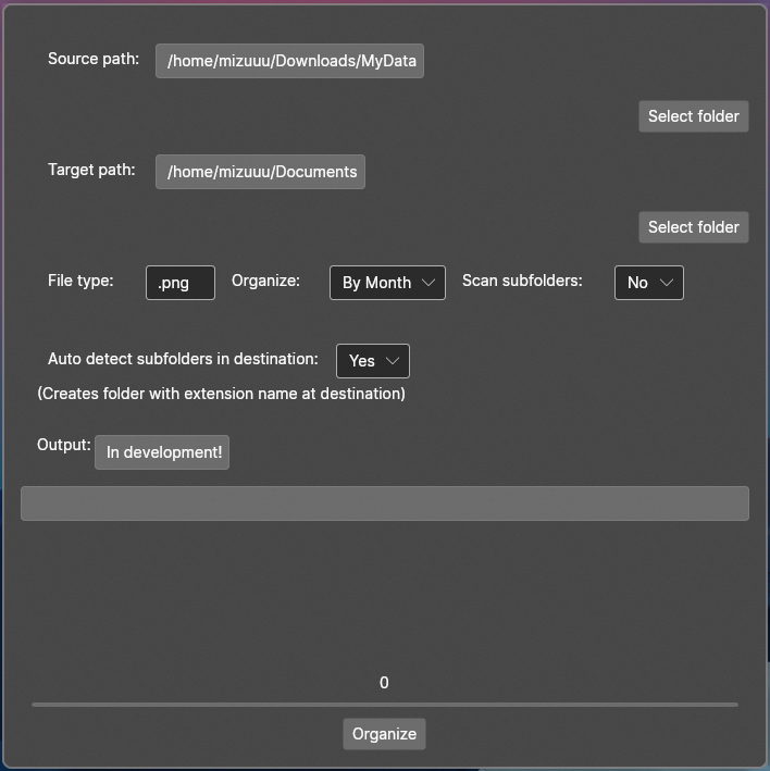 - You can organize by the month and year, or only the year of the file taken from the last modified metadata property. If None is selected, the selected file type will just be moved to Target path.